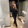 Damenmode Mode V-Ausschnitt Langarm Glitzer Perlen Taille Kompressions Strampler