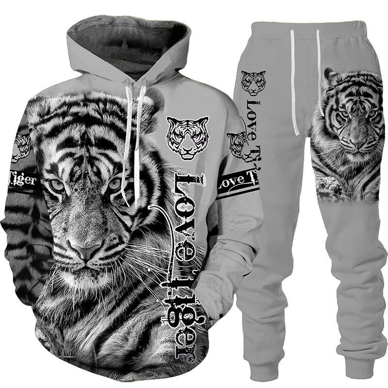 Design Kleidung Neue Tier Wolf 3D Gedruckt Kapuzen Sweatshirt Jogginghose Frühling Und Herbst Herren Set