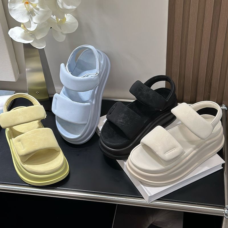 Dicke Sohle Klettverschluss Sandalen für Frauen 2025 Neue Sommer Outdoor Strand Schuhe Slip-On Casual Slides