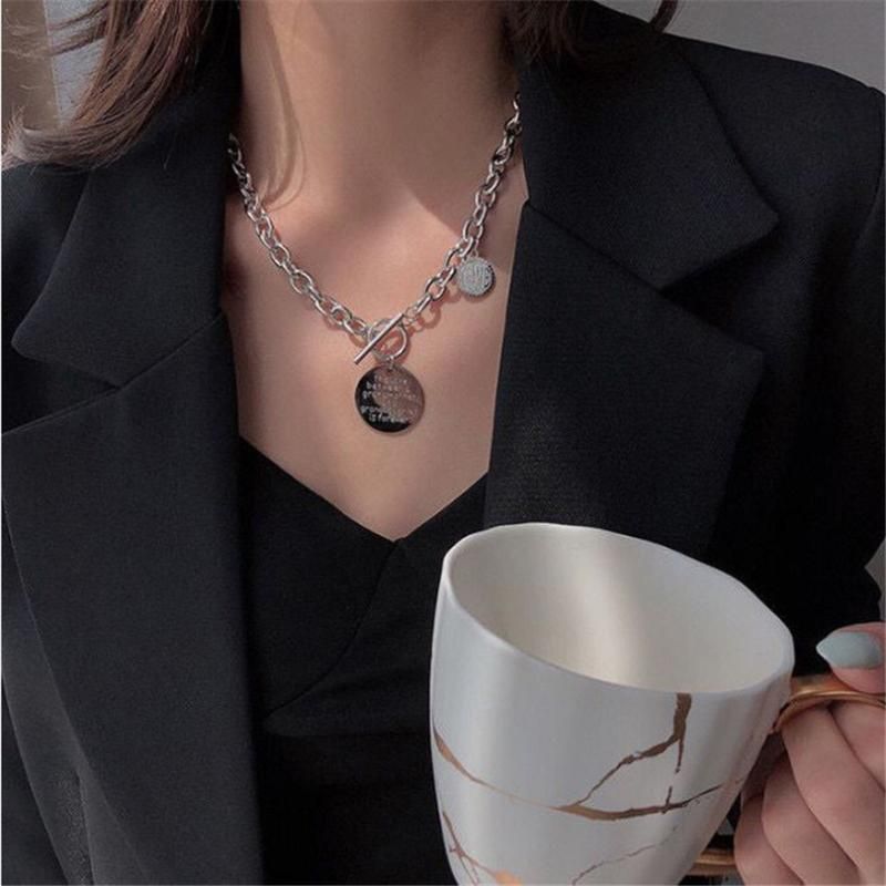 Anhänger Halsketten 2023 Einschichtige Münzkette Choker Halskette für Frauen und Mann Sier Farbe Mode Hip Hop Clavicle