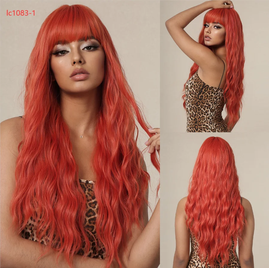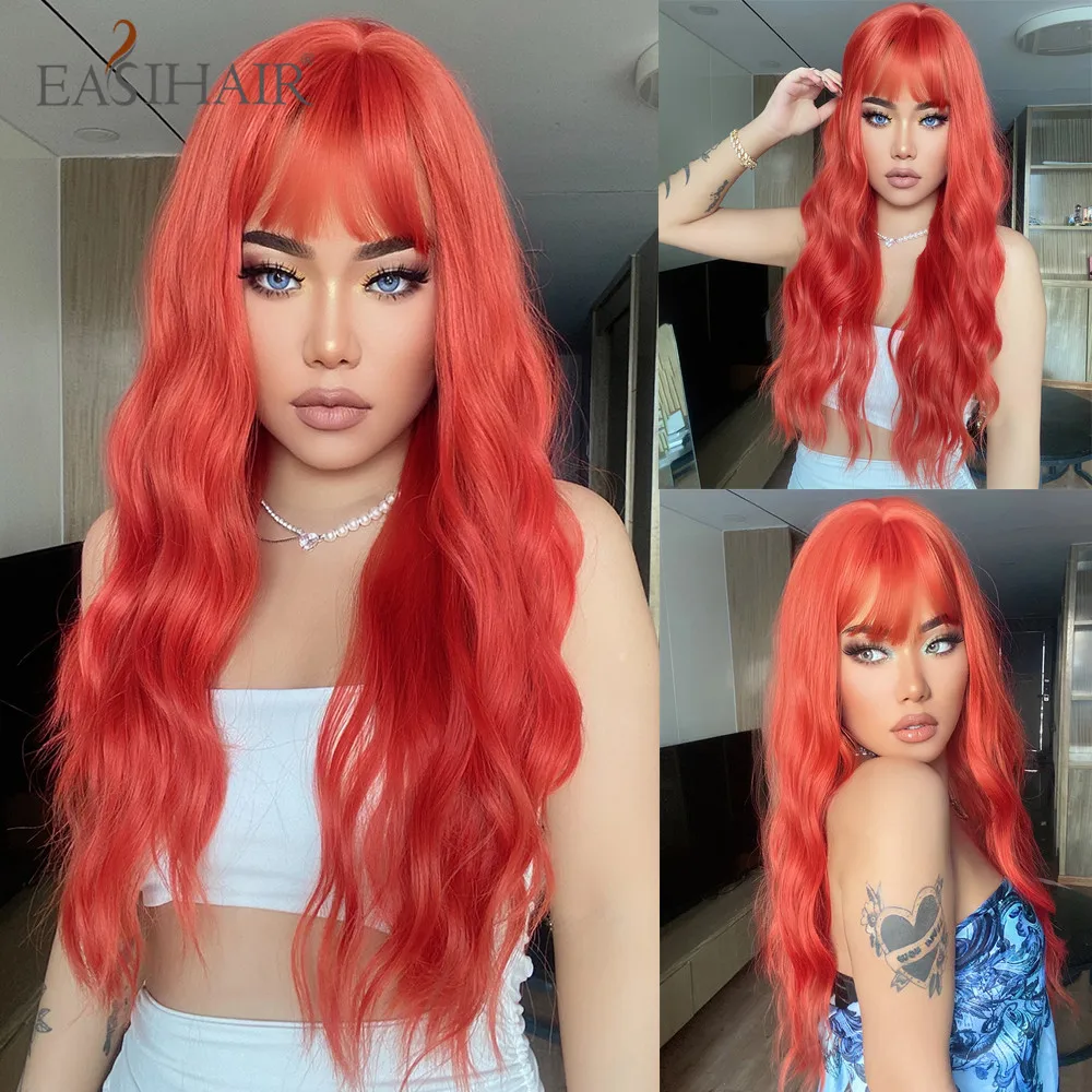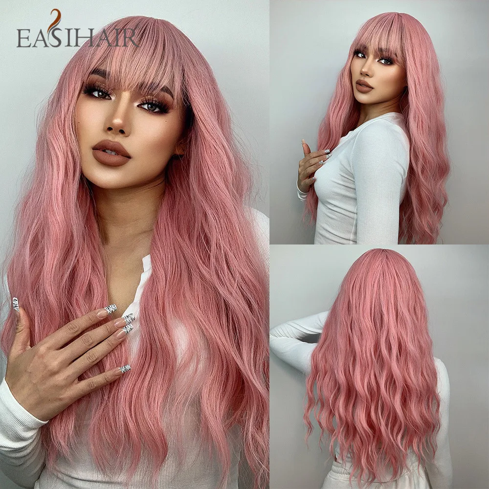 EASIHAIR Lila, lang, gewellt, synthetische Perücken mit Pony für Frauen, farbenfroh, für Cosplay, Partys, Halloween, Haarperücke, hitzebeständige Faser