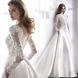 Elegantes, minimalistisches Brautkleid – Langärmliges Brautkleid aus Spitze und Satin mit Kapellenschleppe (Elfenbein, Größen 2–26W, Polyester, hohe Taille)