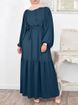 Elegantes muslimisches Damen-Hemdkleid mit übergroßen Puffärmeln, Kaftan, islamische Freizeitmode, türkisblau, Hijab-Modekleid