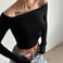 Elegantes schulterfreies Langarm-T-Shirt – Stretch-Polyester-Mischgewebe, Slim Fit, Basic-Oberteil in Schwarz für Damen
