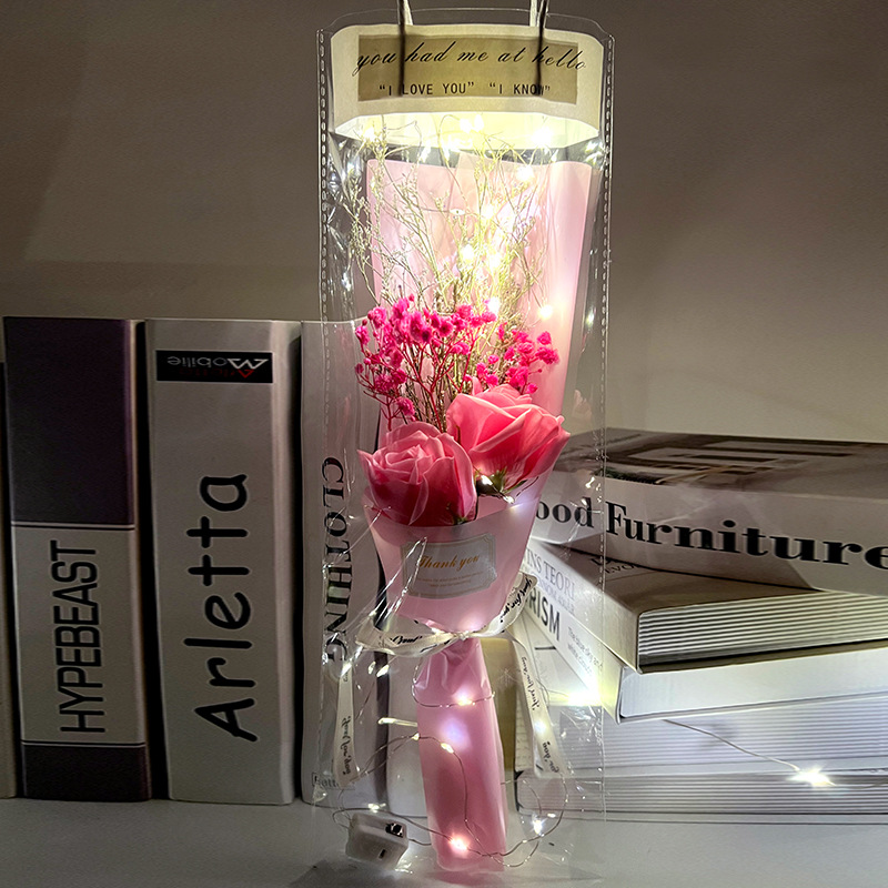 Why settle for ordinary flowers when you can give a luminous keepsake? Our bouquet combines nature’s beauty with lasting charm—dried flowers that never fade, soap blossoms with delicate fragrance, or preserved blooms that defy time. The twinkling LED lights add a magical touch, perfect for dimly lit dinners or bedside cheer.
