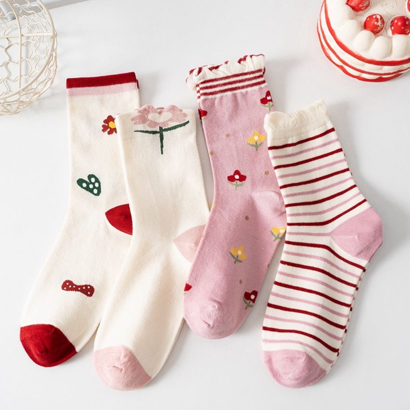 Frühling Neue Nette Blume Gekämmte Baumwolle Medium Rohr frauen Socken Süße Mädchen Socken Mode Gestreiften frauen Socken