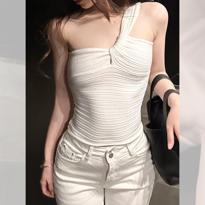 French Chic White One-Shoulder Camisole for Women, Summer Outerwear, Slim Fit, Tight-Fitting, Tube Top, Beautiful Back, Sleeveless