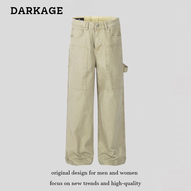 Gewaschene Cargo-Jeans mit mehreren Taschen im amerikanischen Stil für Herren, Street Fashion Ins, lockere, lässige, einfarbige, gerade lange Hosen