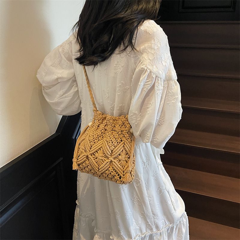 Woven Straw Bag for Women 2025 Summer New Fashion Niche Design Crossbody Bucket Bag Versatile Beach Bag