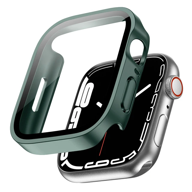 Glas + Hülle für Apple Watch 7 8 45 mm 41 mm 49 mm 44 mm 40 mm gerader Rand Displayschutzfolie Hülle iWatch 4 5 SE 6 7 8 Ultra 49 mm