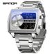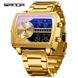 Goldene Herrenarmbanduhr mit großem Zifferblatt und Dual-Display, Edelstahl, Sportuhr, Digitaluhr im Militärstil, Quarzwerk, Leuchtuhr