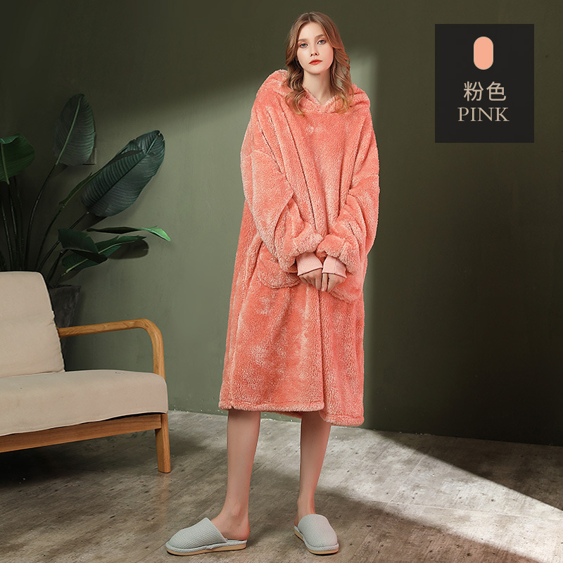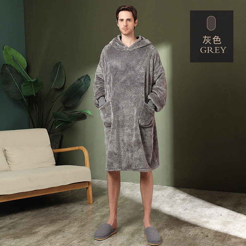 GraceChic Herbst/Winter Kapuzenpullover, lockerer Flanell-Pyjama für Damen und Herren in Übergrößen, bequeme Hauskleidung