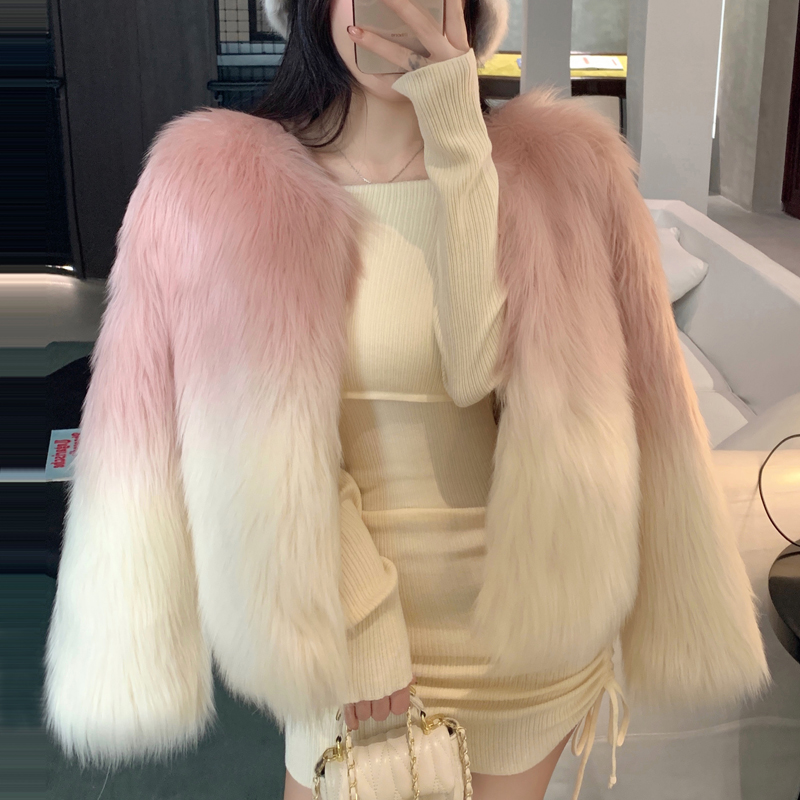2024 Winter Neue Gradienten Fuchs Pelz Gras frauen Kurze Langarm Mode Junge Mantel