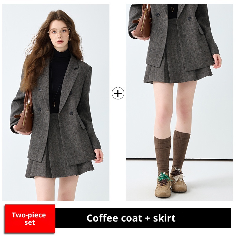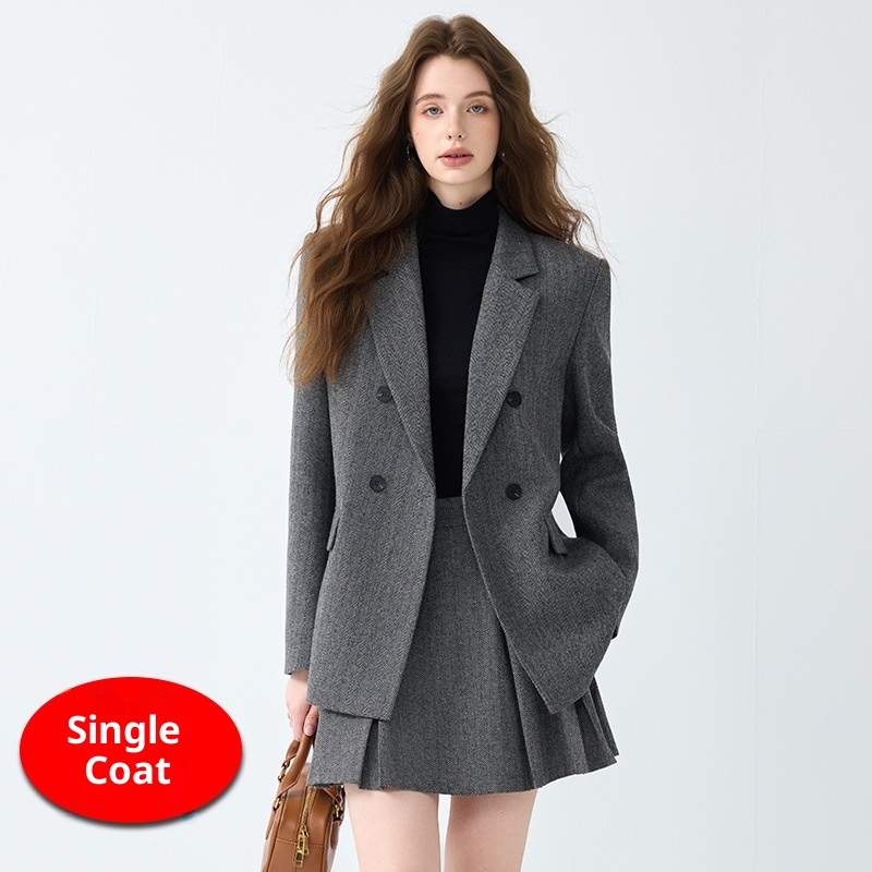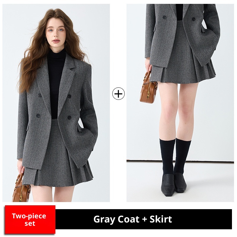 Grauer Blazer für Damen, Frühjahr/Herbst 2025 – Neues, lässiges und hochwertiges Business-Set in kleinen Größen mit Faltenrock_voghion.com