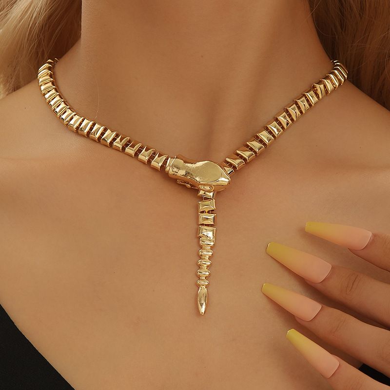 Halskette Damen Goldene Halskette Anhänger Halskette Gold Übertrieben Persönlichkeit Knochen Schlangenform Leicht Luxus Elegant High-End Sinn Socialite Runway Co