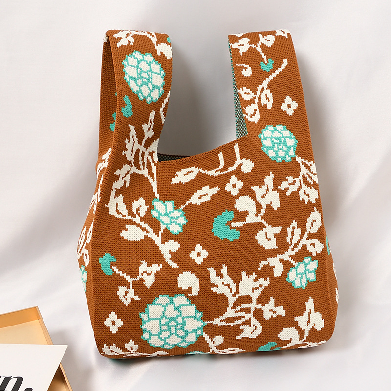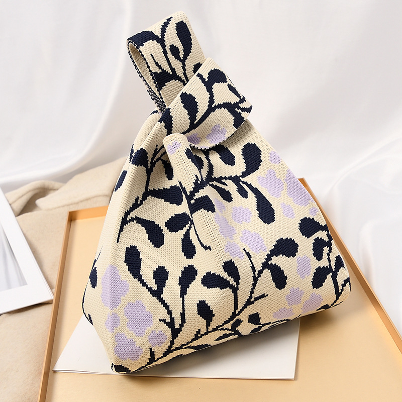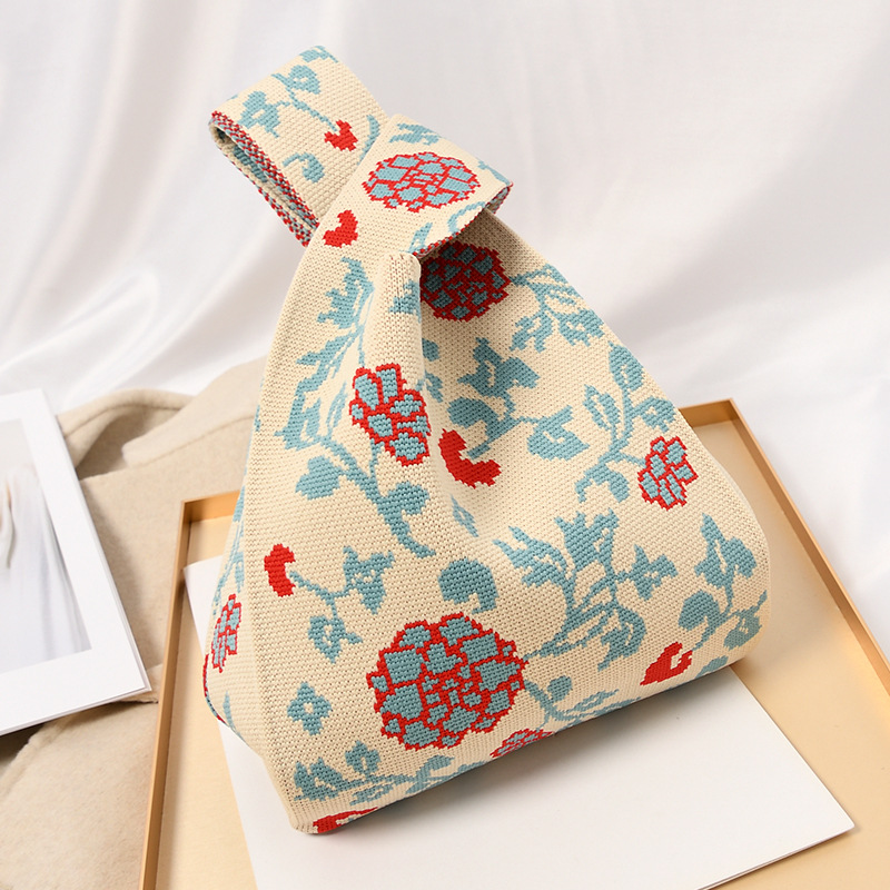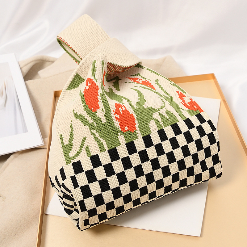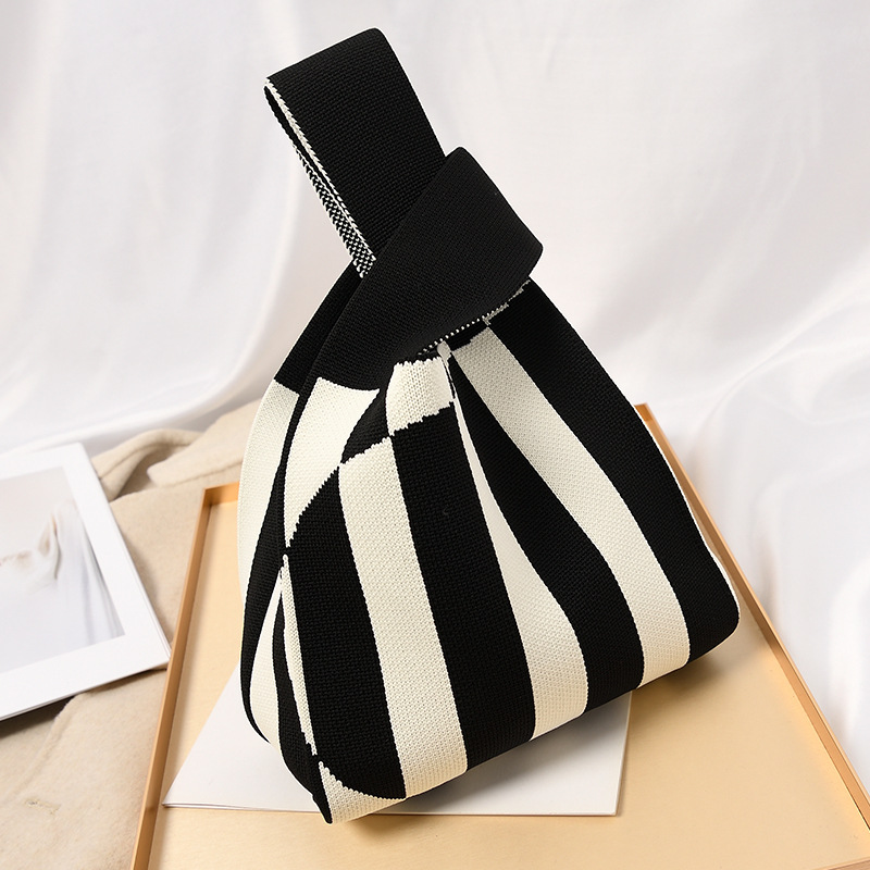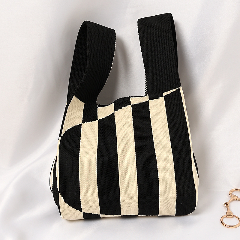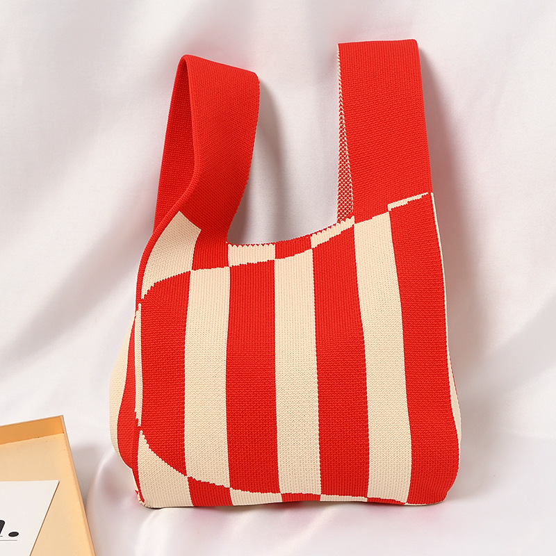 Hand carrying gift handbag, large capacity small bag, women's contrasting color knitted tote bag, portable storage bag for outdoor use