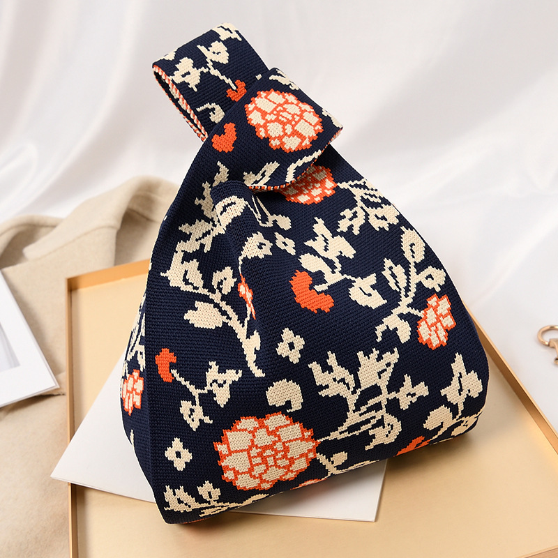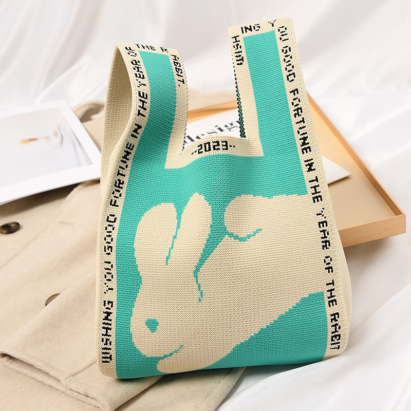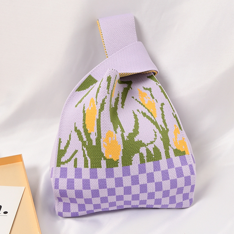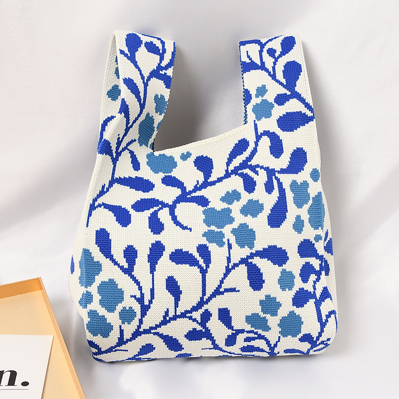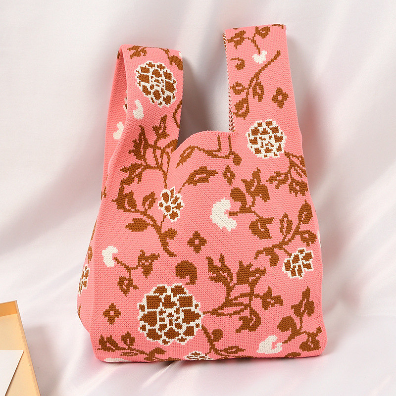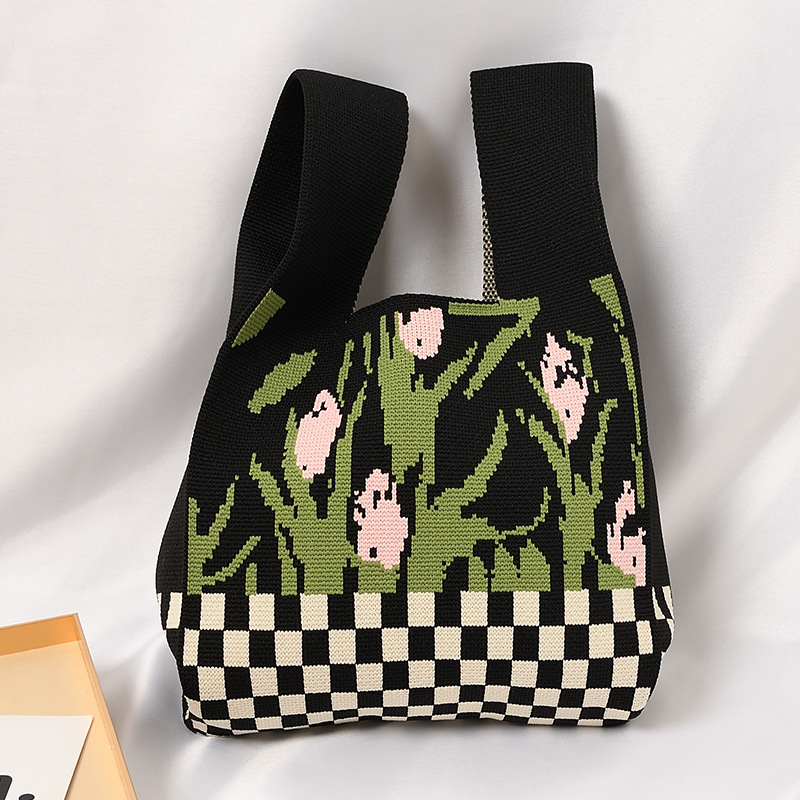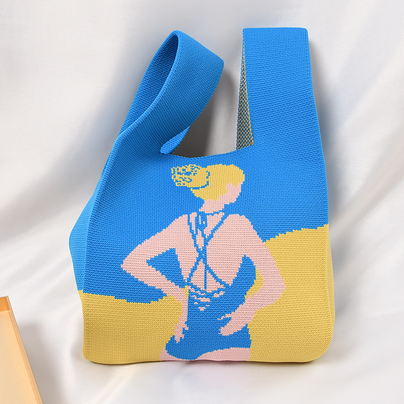 Hand carrying gift handbag, large capacity small bag, women's contrasting color knitted tote bag, portable storage bag for outdoor use