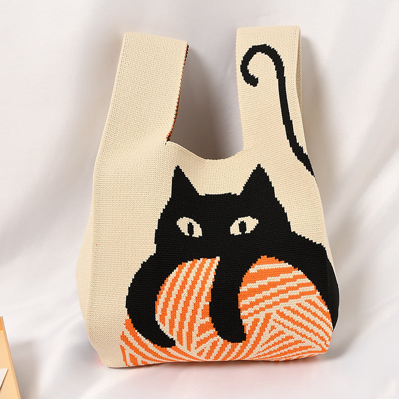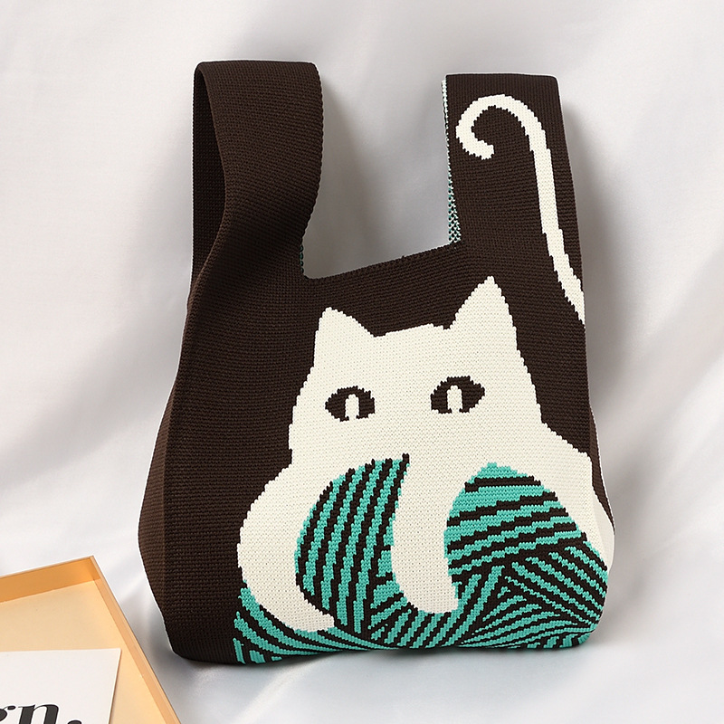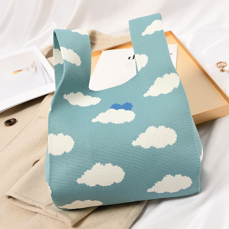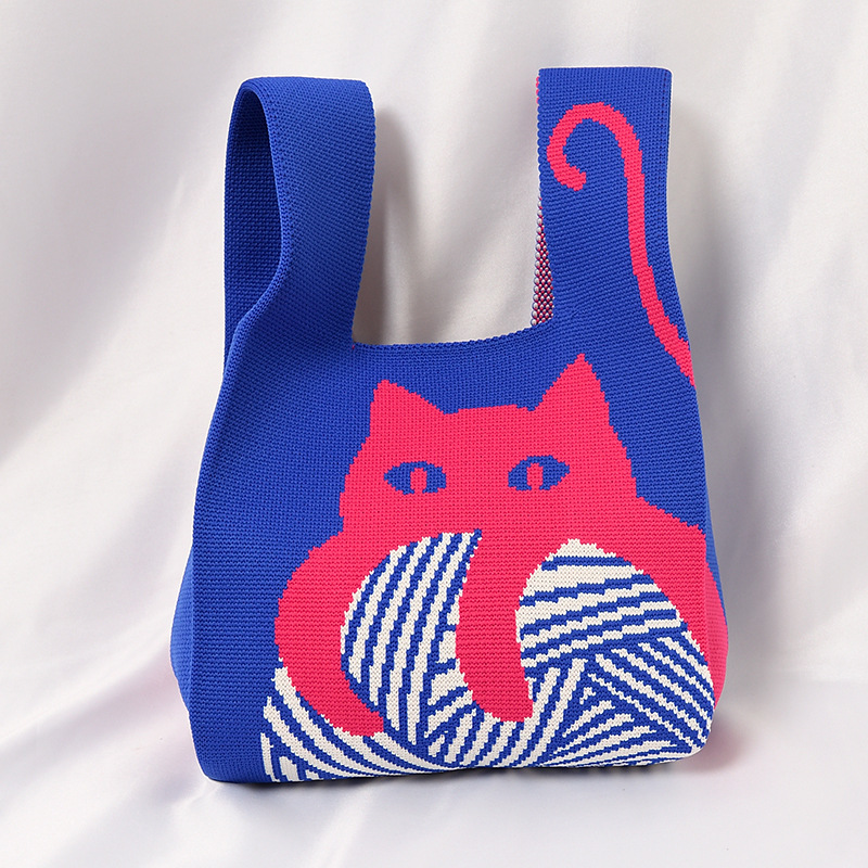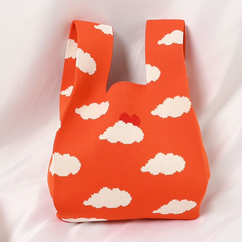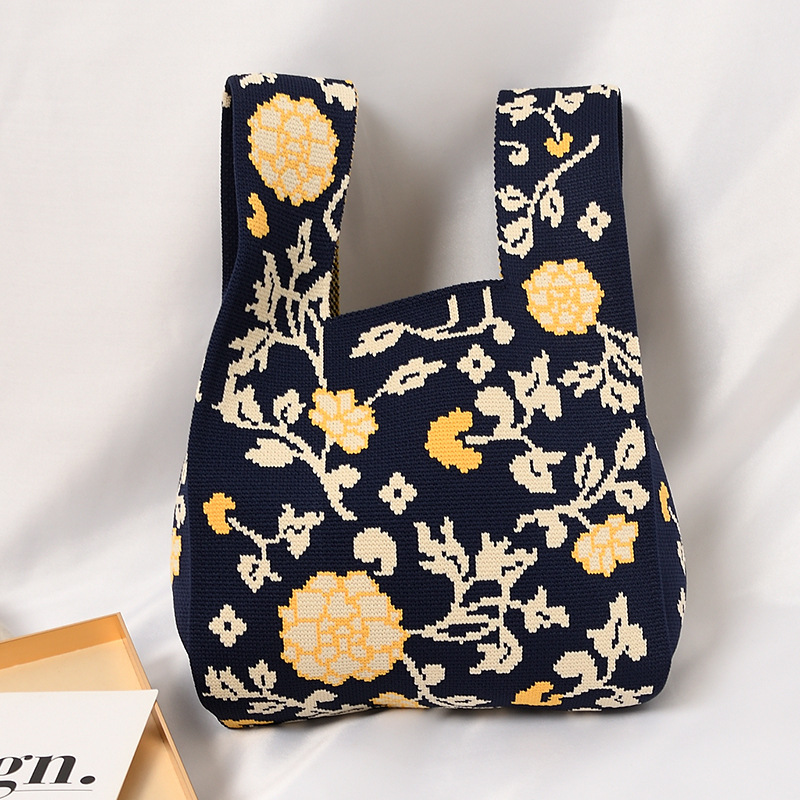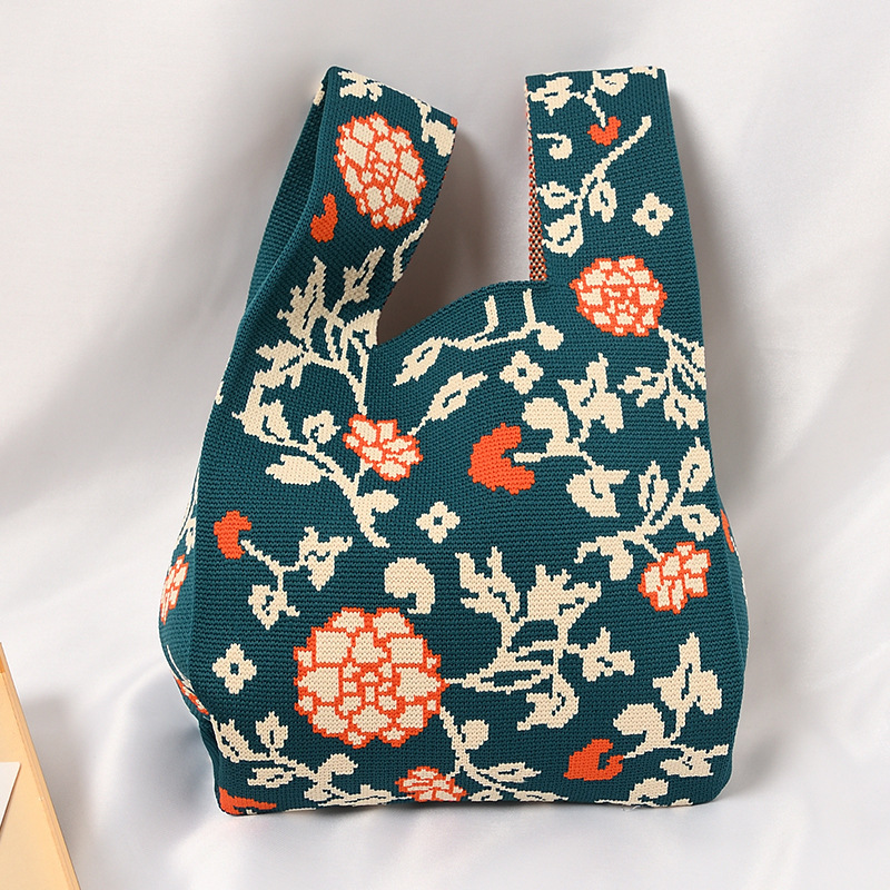 Hand carrying gift handbag, large capacity small bag, women's contrasting color knitted tote bag, portable storage bag for outdoor use