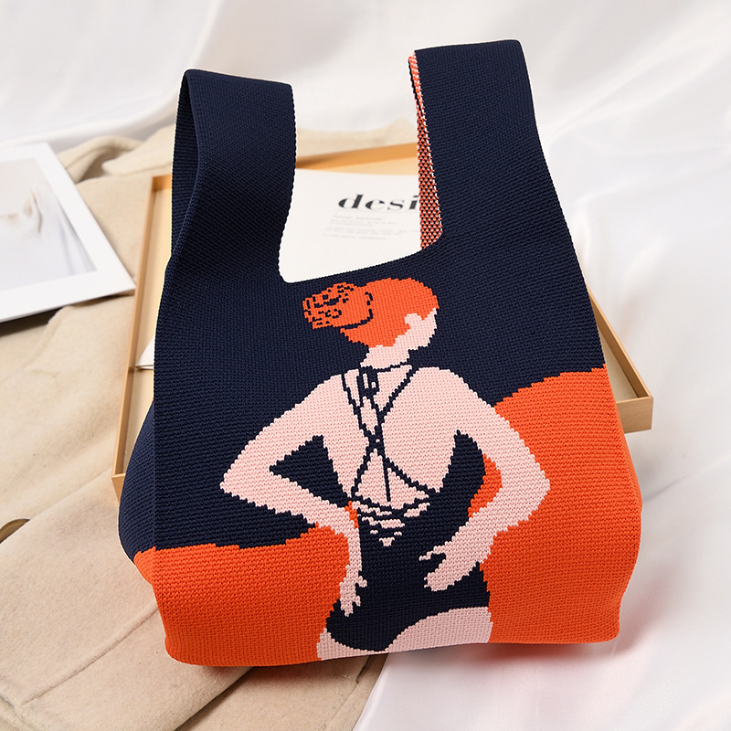 Hand tragen geschenk handtasche, große kapazität kleine frauen kontrast farbe gestrickte tote tasche, tragbare lagerung tasche für