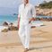 Herren-Set aus Leinenhemd und -hose mit Stehkragen – Leichtes, atmungsaktives Gewebe (Weiß/Grau/Schwarz/Azurblau/Pink/Khaki, S-XXL)