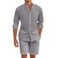 Herren-Set aus Leinenhemd und Shorts – langärmlige hawaiianische Strandkleidung, locker sitzendes, lässiges Sommeroutfit