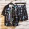 Herren Sommer Neue Große Größe Gedruckt Kurzarm Hemd Anzug Strand Hosen Sets