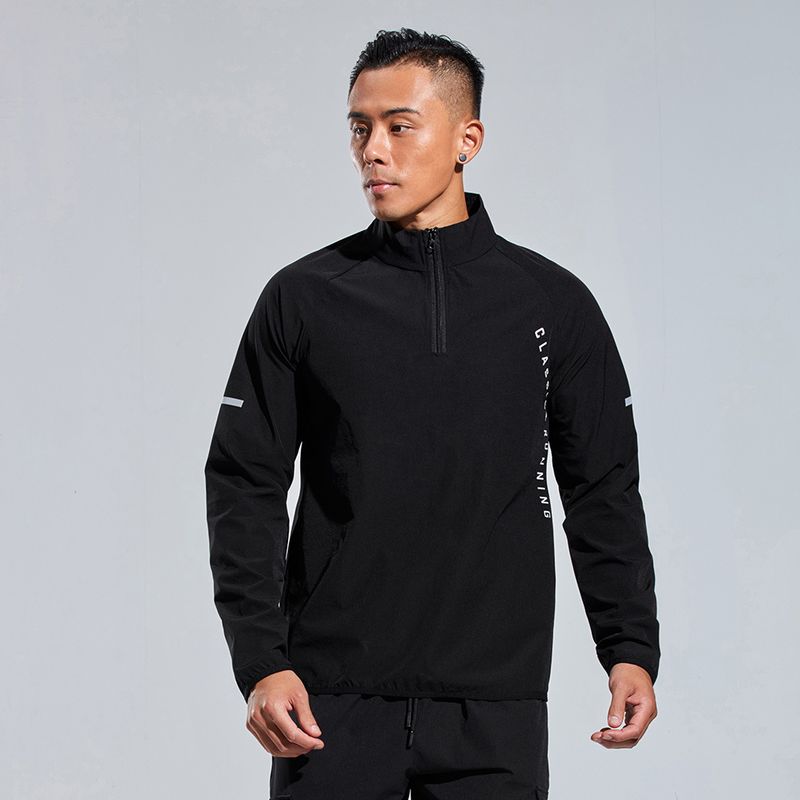 Herren-Sportpullover, winddicht, für Outdoor, Freizeit, Fitness, Laufen, halber Reißverschluss, Langarmjacke