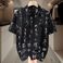 Herrenbekleidung Dünnes Hemd und Hose aus Eisseide, zweiteiliger Anzug mit geknöpftem Textdruck