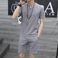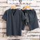 Herrenbekleidung Herren Kurzarm Shorts Anzug Sommer Baumwolle und Leinen Zwei Knopf Große Größe Einfarbig Herren T-Shirt Zweiteiliger Anzug