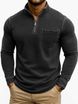 Herrenbekleidung Lässig verwaschenes, abgenutztes Vintage-T-Shirt mit Viertelreißverschluss und Tasche, langärmlig, für Herren – Retro-Freizeitpullover mit abgenutztem Finish