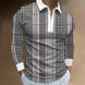 Herrenbekleidung Plus Size Gestreiftes Poloshirt mit 3 Kontrastfarben und Reißverschluss im Frühling und Herbst, Langarm-Reißverschluss-Revers, lässiges Polo