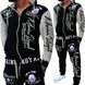 New Men's Sports Set Hooded Letter Colored Personalized Hip Hop Zipper Cardigan Men's Sports Set