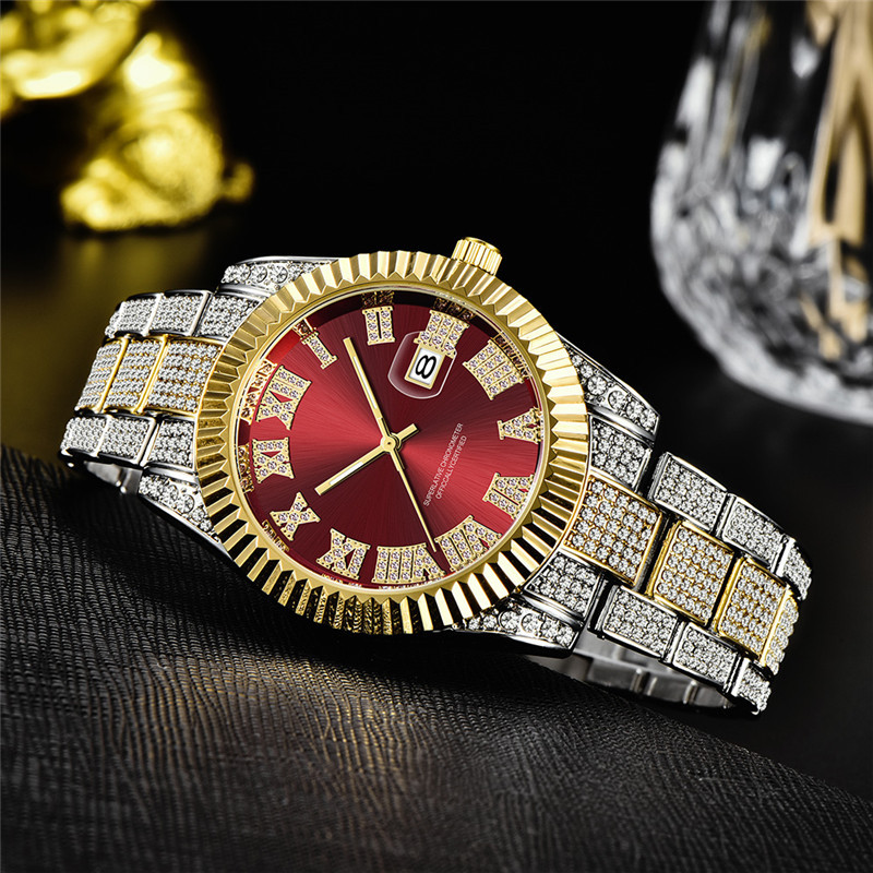 Hip Hop Herren Marke Volldiamant Legierung Band Datum Uhr