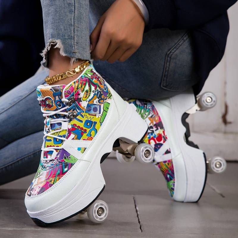 2-in-1 Convertible DesignSwitch seamlessly between a trendy casual sneaker (with wheels retracted) and a 4-wheel roller skate—perfect for daily wear or fun gliding.