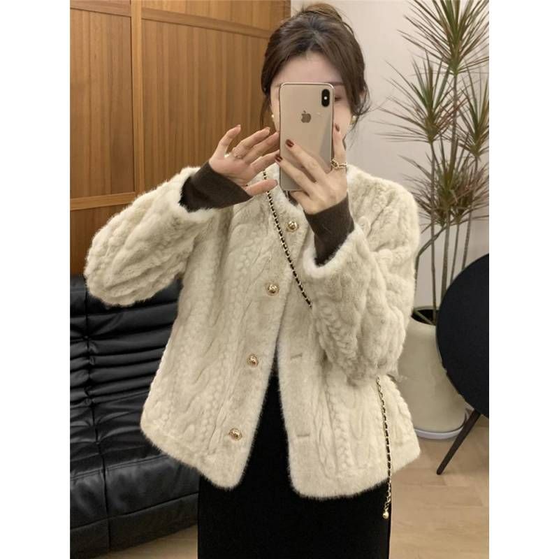 Hochwertige französische Nischen-Korallenfleecejacke für Damen, Winter, neuer lockerer, dicker Lammwollmantel