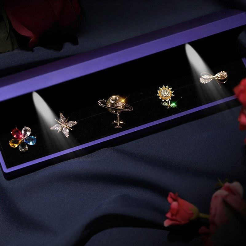 Hochwertige Kupfer-Zirkon-Brosche mit fünf Blättern und Blumen, Geschenkbox, fünfteiliges Set, kleines Geschenk