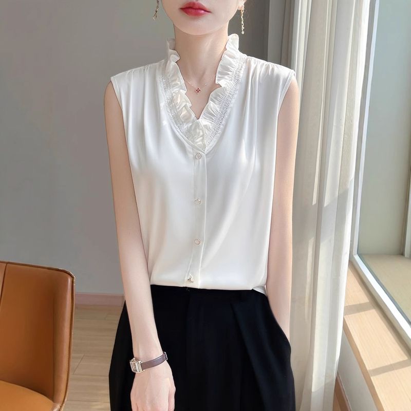 High-Quality Versatile Ruffled Edge Vest Shirt Women's Top Summer New Fashion Trend Elegant