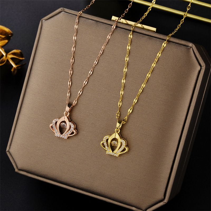 Internet celebrity agile necklace, female fashion queen crown micro inlaid pendant, Japanese and Korean minimalist anti fading titanium steel lock bone chain