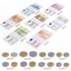 Matching: 25 pieces each of Euro banknotes in denominations of 5, 10, 20, 50, 100, 200, and 500