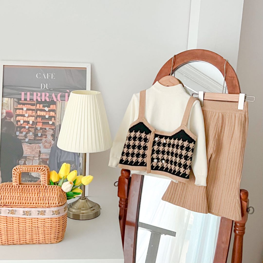 JINYONG Girls' Sweater Two Piece Knitted Flare Pants Set New Little Fragrance Girl True Two Piece Sweater