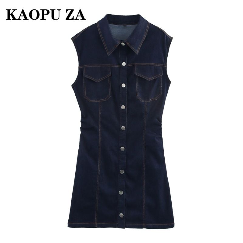 KAOPU ZA Women's Fashion 2025 New Style Fashion Sleeveless Denim Mini Ruched Dress 2638576