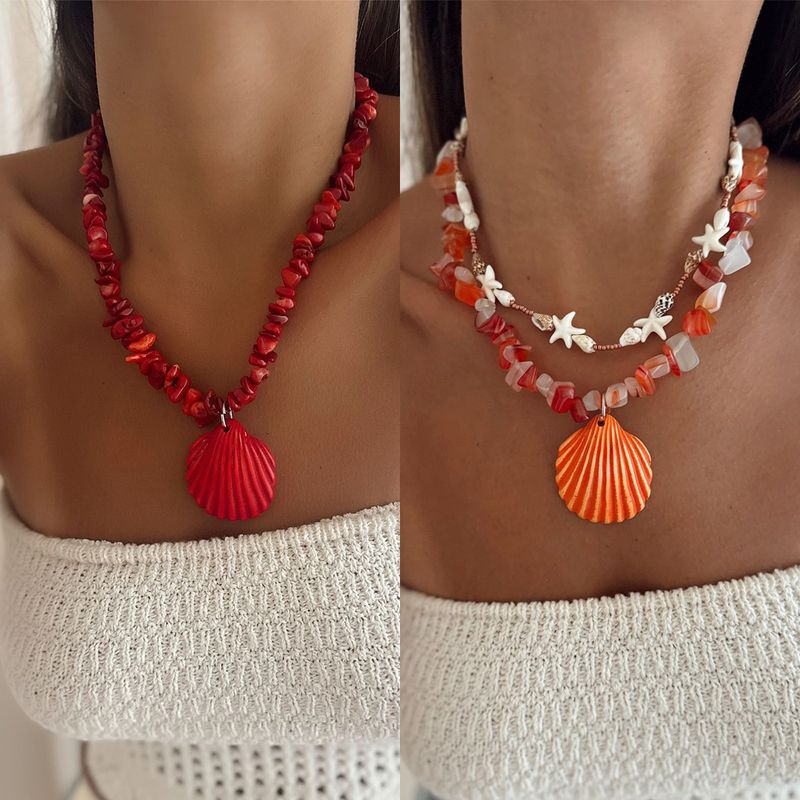 Kette Halskette Anhänger Halskette 2025 Sommer Neue Ozean Urlaub Stil Übertrieben Shell Halskette Unregelmäßigen Stein Mode Ethnische Choker