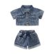 Kinderkleidung Sommer Stilvolle Mädchen Arbeitskleidung Denim Zweiteiler Kurzarm Strickjacke + Shorts