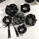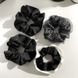 Korean Style High-End Black Satin Elegant Scrunchie Ribbon Mesh Dot Rhinestone Edge Luxury Hair Tie Hair Accessory
