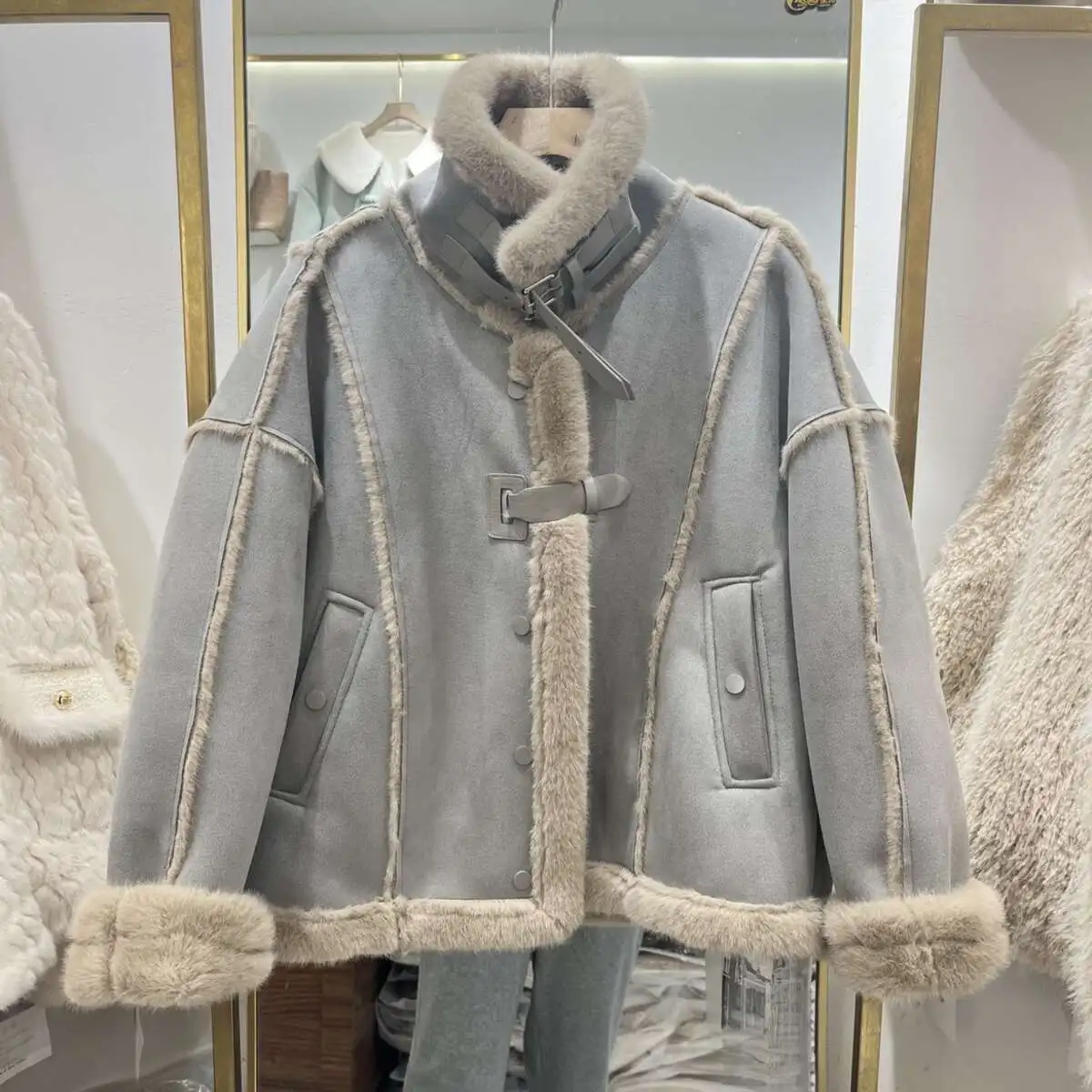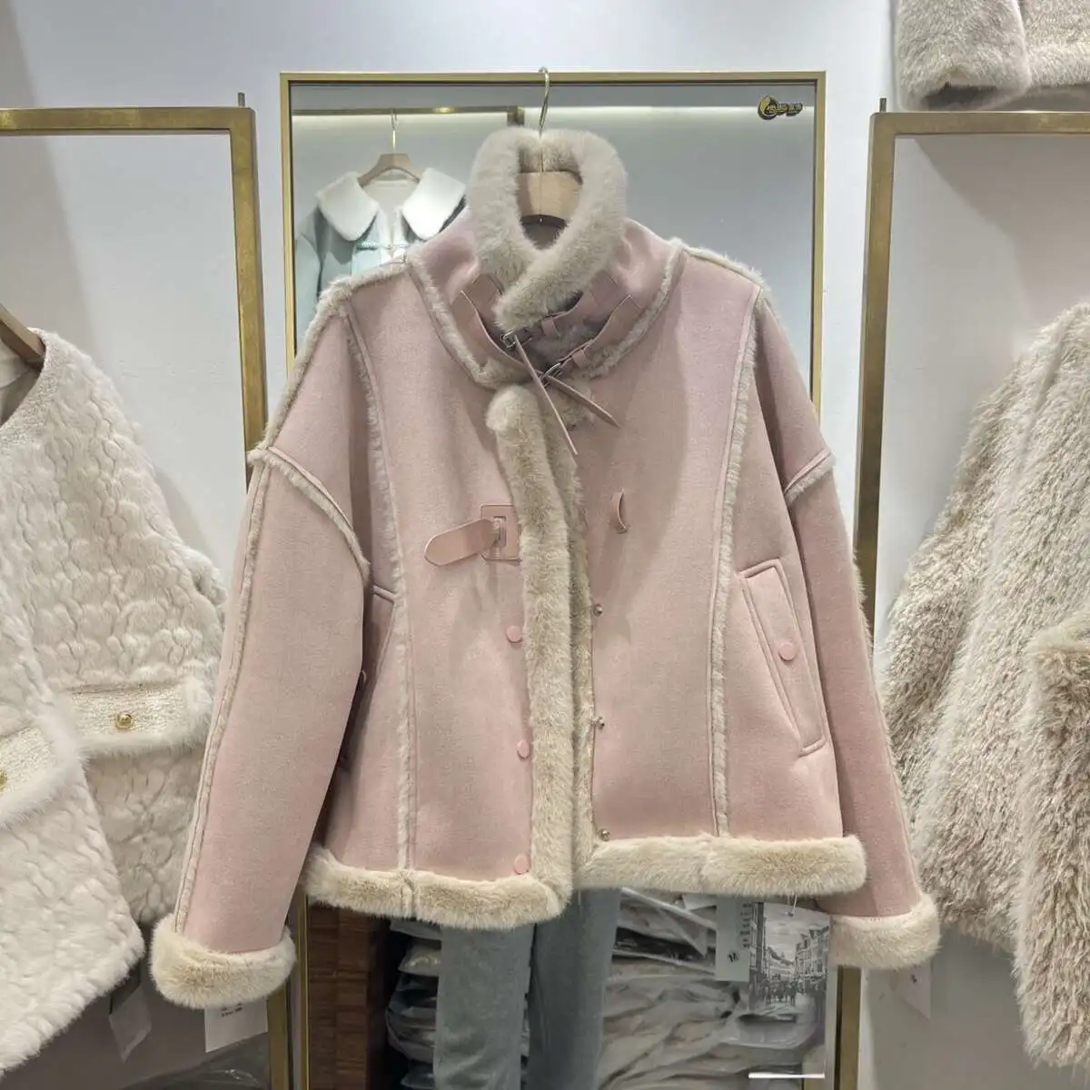 Lamm integrierte Jacke für Frauen mit einem Gefühl von Luxus 2023 Winter neuer Nerzpelz Plüsch Stehkragen Motorradanzug
