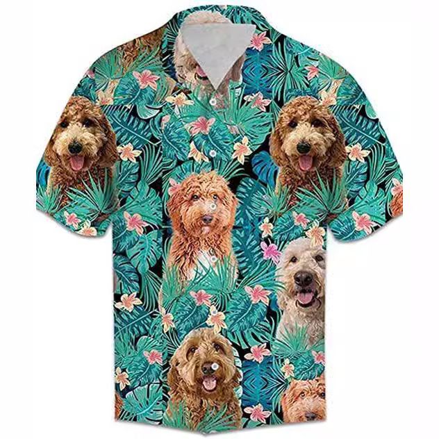 Golden Retriever 3D Digital Printed Shirt Beach Vacation Style Loose Casual Shirt for Men