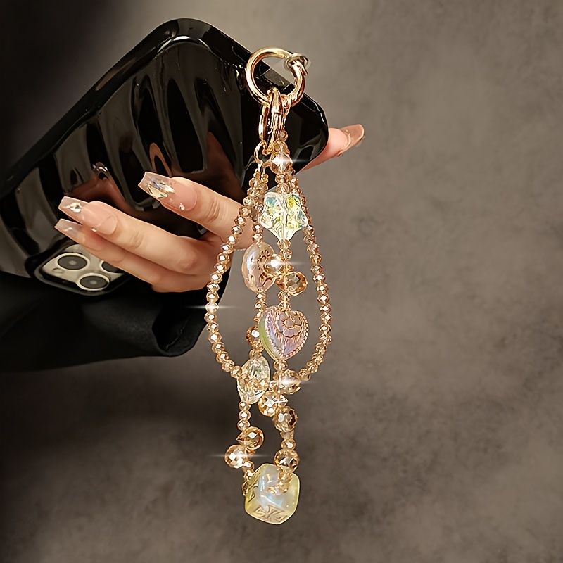 Luxuriöses Armband mit Doppelperlenkette und Clip, modisches Accessoire für Handyhüllen und Taschen