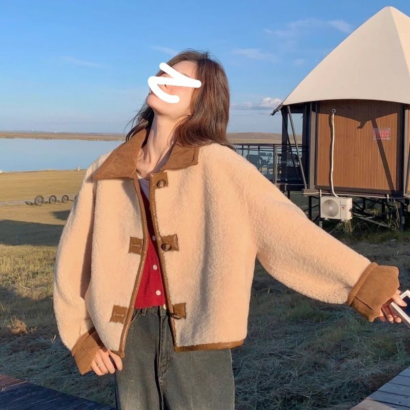 Mädchen-Einteiler aus Lammfell, wendbar, Lammwolle, für Damen, zierlich, modisch, dick gefüttert, kurzes Wildleder-Top