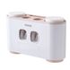 Magnetischer Zahnbürstenhalter zur Wandmontage mit 4 Bechern und automatischem Zahnpastaspender.