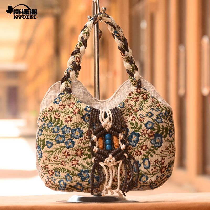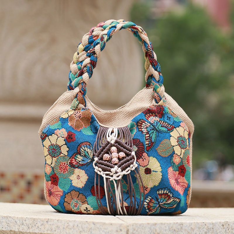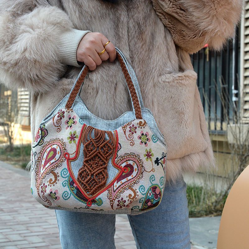 Handtasche im Ethno-Stil einer Mutter mittleren Alters, Damentasche aus Baumwoll-Leinen-Stoff, einfach und leicht